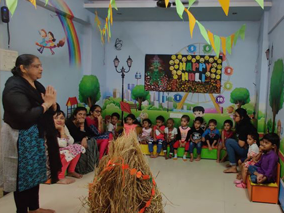 Holi the festivals of colours brings colourful smile. The story Holika Dahan is narrated to the kids. Holi is celebrated in a very healthy and eco-friendly manner.